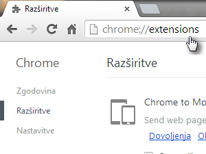 ![]() Odpremo spletno stran chrome://extensions/