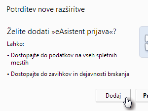 ![]() S klikom na gumb Dodaj potrdimo namestitev rezširitve. |