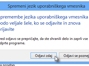 ![]() Po ponovni prijavi v sistem bo uporabniški vmesnik Windows 8 na voljo v novem jeziku. |