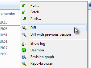 ![]() Sedaj lahko naprej delate na projektu. Ko ste naredili spremembe, zopet z desnim miškinim gumbom kliknete na prazen prostor v mapi in izberete možnost TortoiseGit -> Diff. |