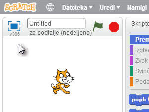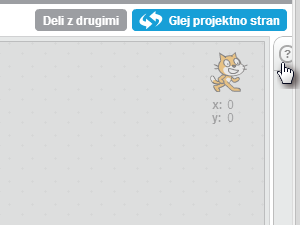![]() Odprl se bo prazen delovni prostor in tudi Scratchova pomoč (v angleščini), ki jo lahko zaprete. |