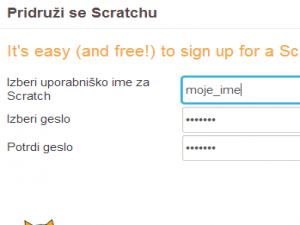 ![]() Kliknite Pridruži se Scratchu, da se registrirate. |