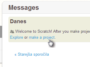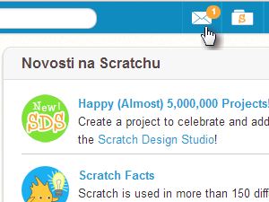 ![]() Sem boste prejemali tudi nadaljna sporočila (na primer če kdo označi ali komentira vaš projekt) Prikazalo se bo sporočilo Scratchove ekipe.