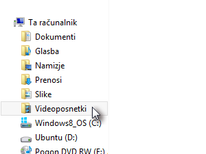 ![]() V kolikor se želite znebiti le ene ikone enostavno poiščite pravi ključ in ga izbrišite. Jaz bom izbrisal mapo Videi. |
