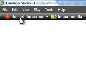 ![]() Odprite Camtasia studio. Kliknite Record the screen, da posnamete zaslon. Če imate že posnet zaslon ali pa bi radi dodali video iz kamere, kliknite Import media. Camtasia Studio najdete na tem naslovu. |
