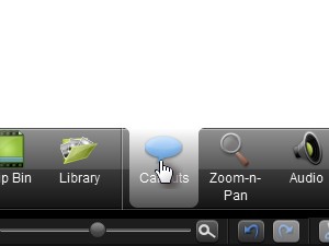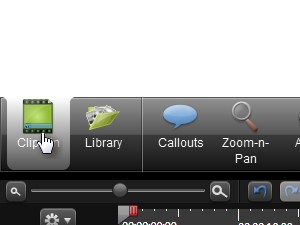 ![]() Zdaj pa nazaj v urejevalnik. Izberite zavihek clip bin ali pa library, če želite uporabiti predloge. |