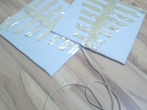 Za dvožilni kabel sem vzel stari polnilec od noki-e in ga razrezal. Nato sem ta kabel na eni strani prisponkal na karton+alufolio - kot kaže lekcija, na drugi strani pa privil na stari antenski kabel - en konec na plus, drugega pa na nulo (kabelčki za nulo so oviti okoli notranje izolacije, te vse kabelčke zaviješ v eno. (: |
