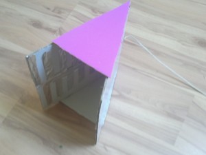 ![]() Iz kartona izrežite dva trikotnika s kotom 45 stopinj. |