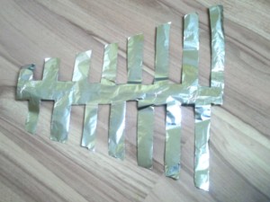 ![]() Potem iz prepognjene alufolije izrežite obliko antene. |