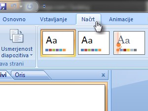 ![]() Odprite PowerPoint in izberite zavihek Načrt. Izberite temo, ki vam je všeč. |