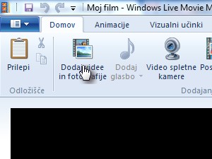 ![]() Ko imate posnete vse slike, odprite Windows live movie maker. Kliknite Dodaj videe in fotografije. |