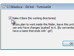 ![]() Izberite možnost Make it Bare, kar pomeni, da datotek v tej mapi ne bomo spreminjali in bo mapa uporabljena samo kot skladišče za nek drug projekt GIT. |