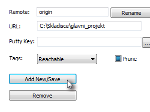 ![]() Pod Remote izberite ime skladišča, ki ste ga dodali v koraku sedem. Potrdite izbiro z OK. |