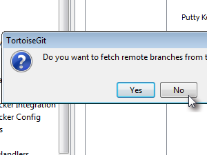 ![]() Pojavilo se bo še okno, kjer vas bo vprašalo, ali želite iz dodanega skladišče prenesti vse veje projekta. Ker je skladišče trenutno prazno, lahko izberete No.