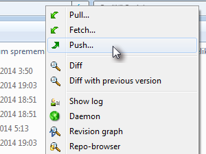 ![]() Sedaj bomo vse datoteke našega projekta, skupaj z vso zgodovino in spremembami prenesli v skladišče. V našem projektu izberemo možmost TortoiseGit -> Push... |