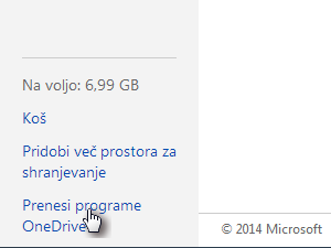 ![]() Pojdite na spletno stran OneDrive. Kliknite Prenesi programe OneDrive. |