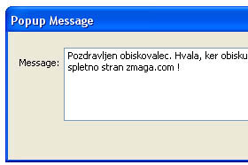 Ob odprtju spletne strani, bi se vam moralo prikazati novo okno s sporočilom, ki ste ga prej določili.