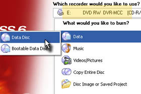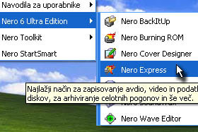 Kliknemo na Start, Vsi programi, Nero, Nero 6 Ultra Edition in izberemo Nero Express.