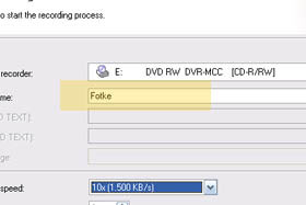 Current recorder naj ostane isti (samo da je RW ali R na koncu, primer DVD RW CD-R/RW). V Disc name vnesite poljuben tekst. in spodaj writing speed določite malo manj kot najhitrejši.