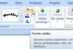 Kliknite na puščico pri gumb Polnilo oblike (glej sliko)... |
