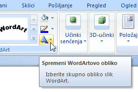 Kliknite na gumb Spremeni WordArtovo obliko (glej sliko)... |