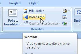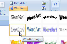 Če tega gumba ne vidite, označite WordArt besedilo na dokumentu in kliknite zgoraj na Orodja za WordArt. |