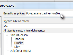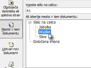 ![]() Nato izberite list, do katerega bi radi ustvarili povezavo. |