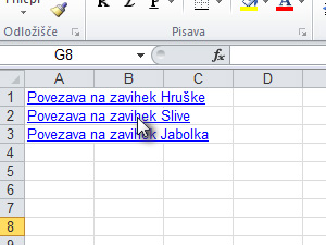 ![]() Jaz sem dodal še ostali dve in nato kliknil na eno povezavo ... Katere lahko potem vse označim in kopiram na druge liste. Torej z miško označimo vse, pritisnemo tipki Ctrl + C, da označeno kopiramo in nato na drugih listih prilepimo tako, da pritisnemo Ctrl + V. |