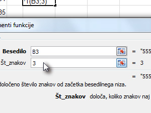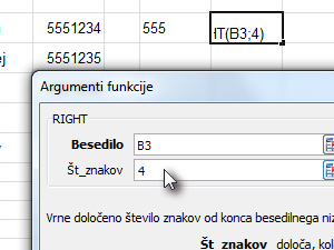 ![]() Kliknite sedaj v prazno polje Št_znakov in vpišite številko, katera predstavlja število znakov iz leve proti desni. V mojem primeru želim prikazate štiri znake iz desne, zato vpisal številko 4. Kliknite na gumb V redu. |