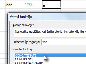 ![]() V novem oknu Izberite kategorijo določite Vse in nato spodaj izberite CONCETANATE ter kliknite na V redu. |