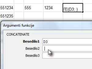 ![]() Besedilo3 pa določite celico z zadnjimi znaki (glej sliko). Kliknite na gumb V redu. |