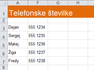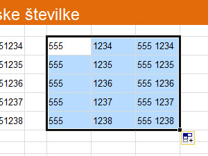 ![]() Tako, uspelo nam je dodati presledek. To sicer velja v primeru, ko imamo v celicah isto število znakov. V mojem primeru sedem. |