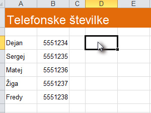 ![]() ... in povlecite navzdol oziroma do celice, katera ima na levi podatke (glej sliko). |