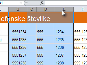 ![]() Še ena osnovna za Excel. Sedaj bomo skrili vse odvečne celice, kjer smo uporabili formule. Označite stolpce, katere bi radi skrili (glej sliko). |