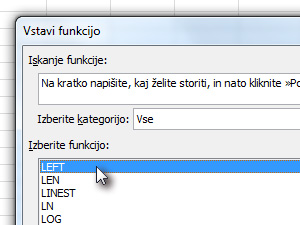 ![]() V novem oknu Izberite kategorijo določite Vse in nato spodaj izberite LEFT ter kliknite na V redu. |