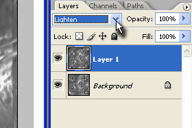 Dupliciranemu layerju določite senčenje na Lighten (glej sliko).