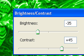 Odpre se novo okno. Brightness nastavite -35 in Contrast +45. Seveda se lahko s temi nastavitvami poljubno igrate. Kliknite na gumb OK. |