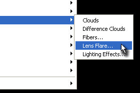 Kliknite zgoraj na Filter, Render in izberite Lens Flare... |