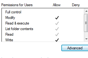 S klikom na Advanced se vam odpere okno z zavihkom "premissions".