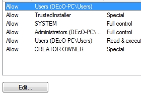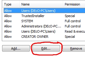 Spodaj v izbirnem oknu kliknete na "Users(uporabnik-PCusers)" in kliknete "Edit" gumb spodaj. |
