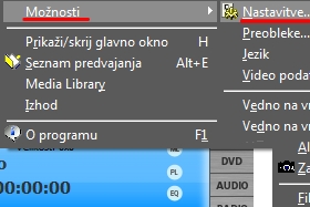 Odperemo predvajalnik BSPlayer in na njega kliknemo z desnim klikom ter izberemo: Možnosti --> Nastavitve.