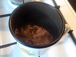 V tem času bi nam morala zavreti jušna osnova. Odstavimo jo iz grelne plošče. |