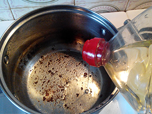 V lonec ponovno nalijeno nekaj kaplic olja. |