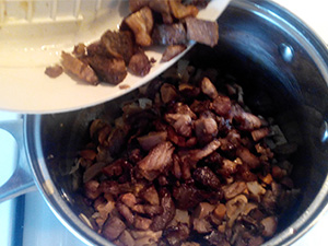 Ko meso dobi lepo zapečeno barvo, ga vzamemo iz lonca. |