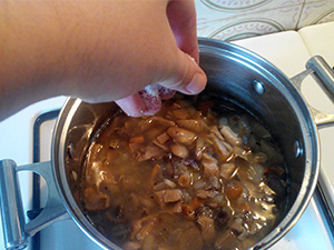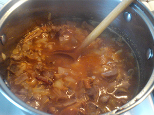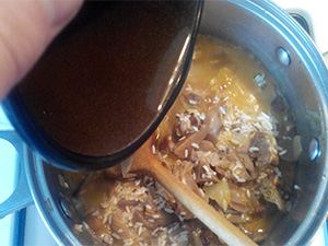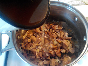 In zalijemo z jušno osnovo, ki smo si jo prej pripravili. |