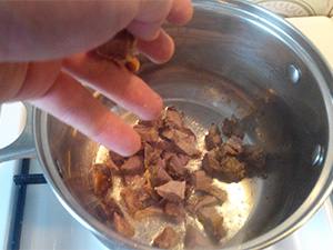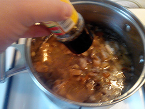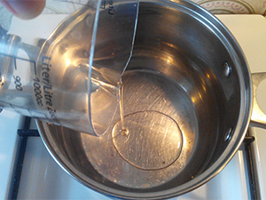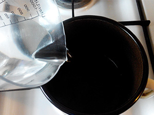 Sedaj bomo pripravili jušno osnovo. V manjši lonec nalijemo pol litra vode. |