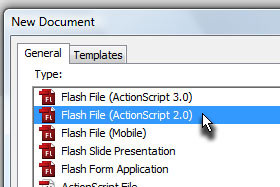Dokument mora biti kompatibilen z ActionScript 2.0.
