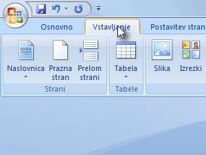 Najprej odprite Word dokument, ter zgoraj v opravilni vrstici izberite Vstavljanje.
