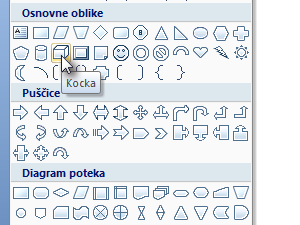 ![]() Tukaj vam Word ponudi pestro izbiro različnih oblik. Jaz bom izbral kocko. |