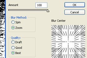 Amount določite 100, Blur Method Zoom in Quality Best. Klikniten a gumb OK. |
